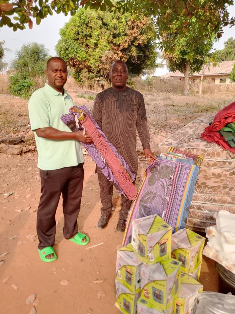 To execute his intervention, he delegated a team led by his constituency officer, Dr. Raphael Ogar Oko, including his Okuku ward coordinator, Mr. Adoga Boniface, Okuku ward PDP Chairman, Mr. Idagu Oluohu and others, to visit and inform the affected families that a new 16 room building has been rented for them. The following relief materials were also distributed to the victims: